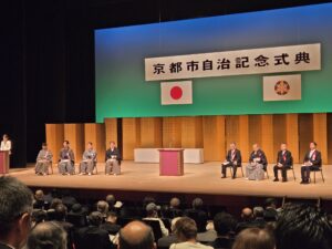 同式典は、京都市民自らの手による市長の選任、並びに市役所の開庁により、明治31年10月15日に真の自治権を獲得したことを記念して毎年開催。